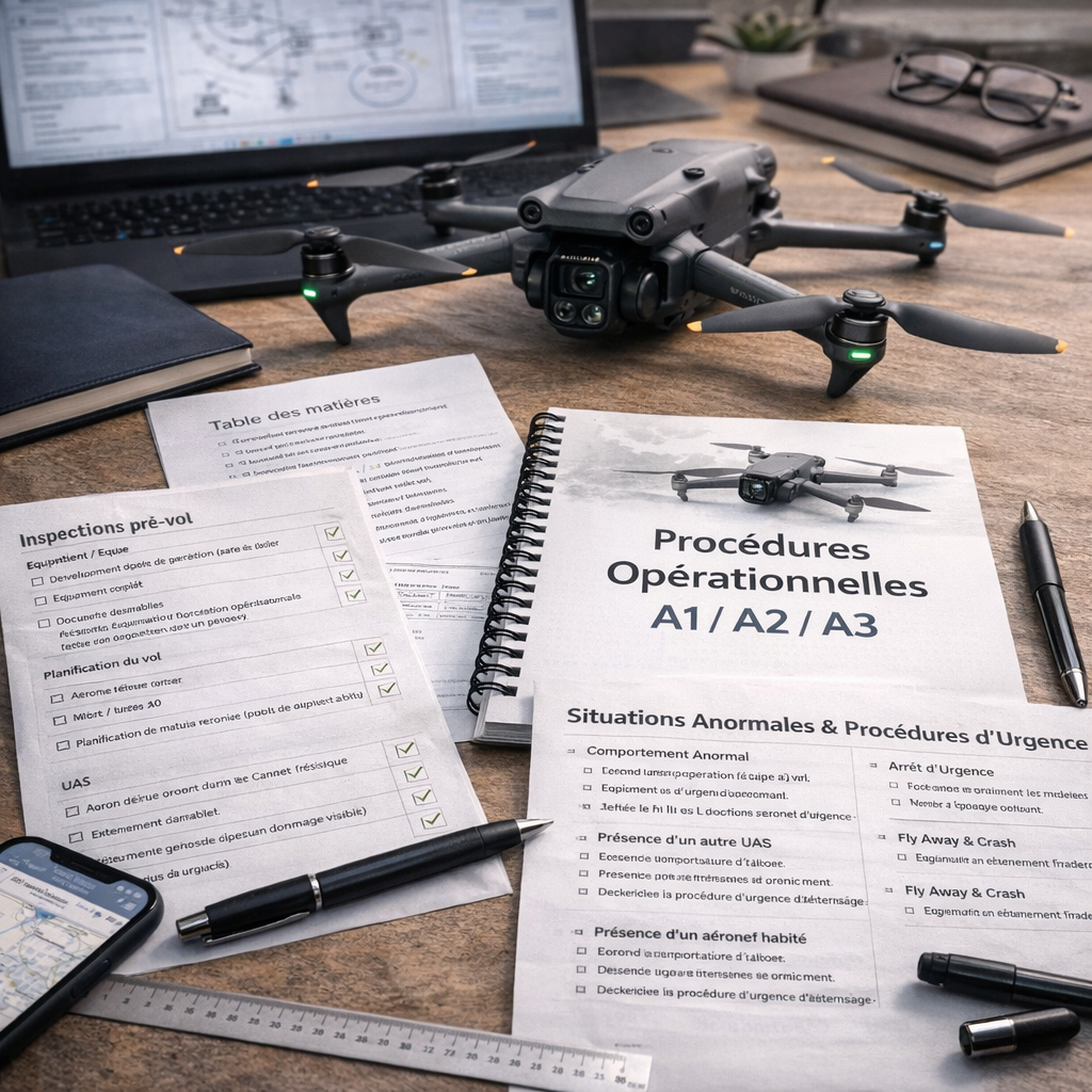 Simplifiez vos opérations avec nos canevas personnalisés : carnet de vol, carnet technique et checklists pré-vol/post-vol. Organisez facilement vos missions, assurez la sécurité de vos appareils et respectez les exigences réglementaires.